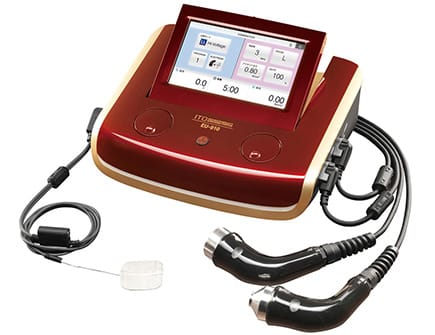 Hi-Voltageモードと超音波治療を組み合わせた物理療法になります。筋肉・関節内・神経・靭帯などの深い部分にまで効果があります。どのような症状も早期に改善させる可能性があります。特に関節可動域の改善には高い効果を発揮します。急性の痛みで早く痛みを取りたい、早期に現場に戻りたい方にお勧めです。