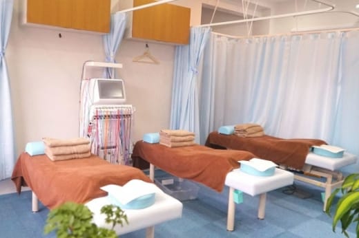 施術スペースは、太陽の光が差し込み明るい雰囲気です。また、一つ一つのベッドがカーテンで仕切られており、プライバシーを守りながら施術を受けて頂くことが出来ます。