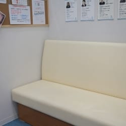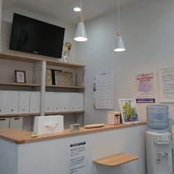 3~4名程度の待合スペースがあり、テレビが設置されているのと、季節やトレンドに合わせた各種雑誌が揃っております。また、お湯と水が出るウォーターサーバーが常設されており、施術の前後のお好きなタイミングでお飲み頂けます。
